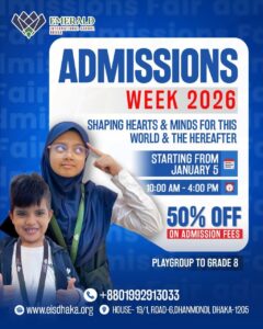 Missed the Spot Admissions Day 2025? Donโt worry! Emerald International School Dhaka is hosting ๐๐๐ฆ๐ข๐ฌ๐ฌ๐ข๐จ๐ง๐ฌ ๐๐๐๐ค ๐๐๐๐. Prospective parents, weโve got you covered! Partner with us in Shaping Hearts & Minds for This World & the Hereafter. 50% off on Admission Fees Date: From January 5, 2026 Time: 10:00 , … - 7admissions FairAll Day